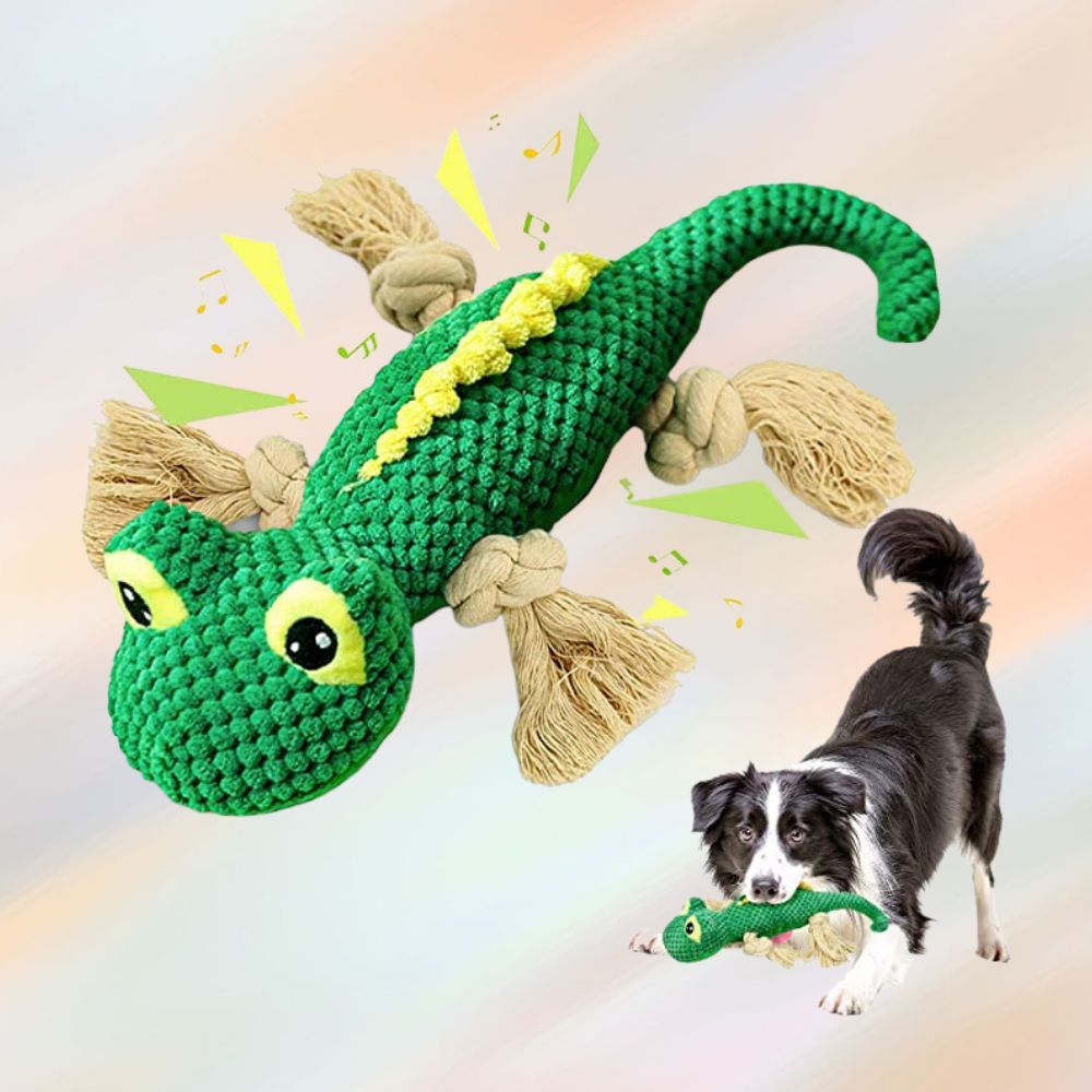 Has a built-in vocal bladder that emits sounds when bitten by pets, stimulating their interest.