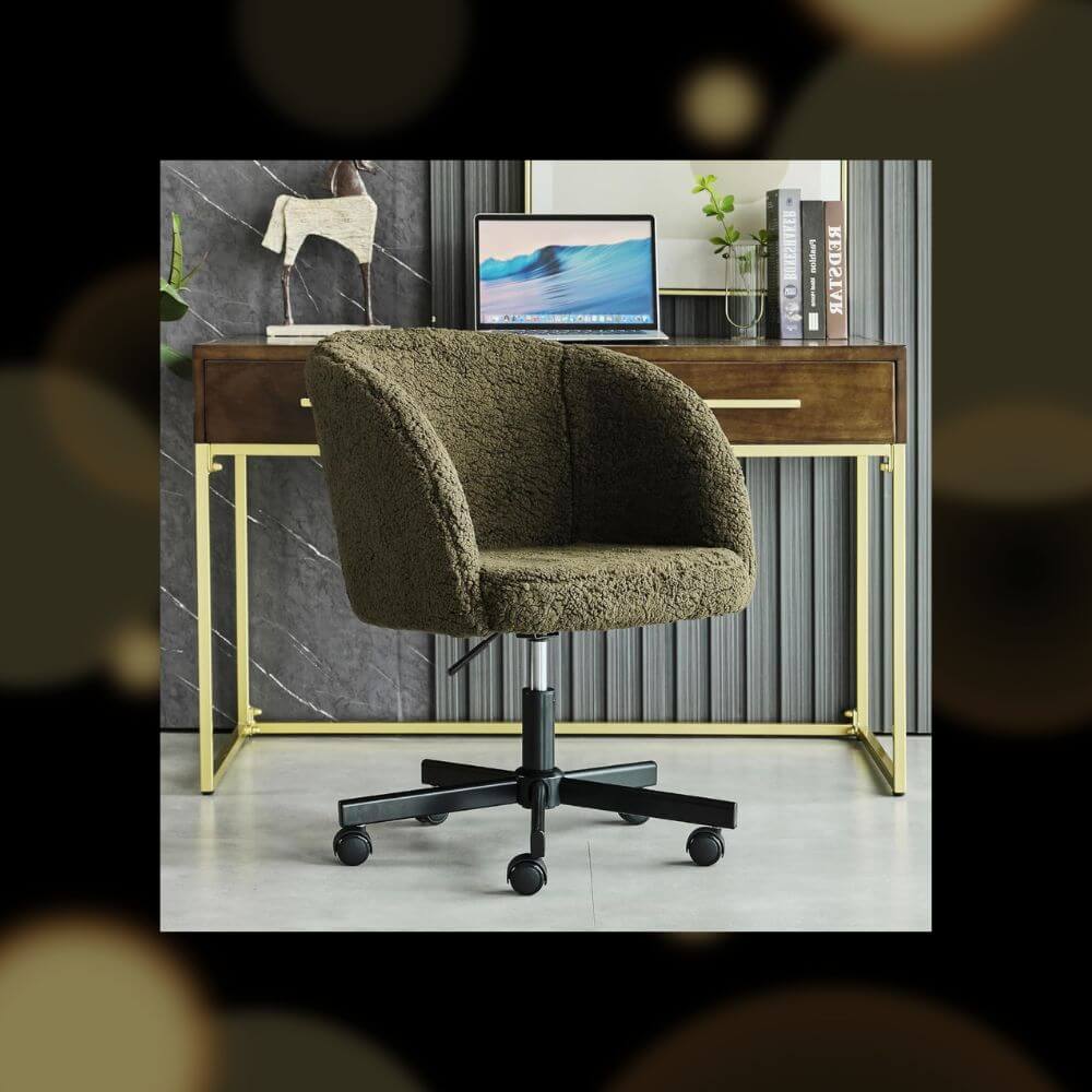 Introducing the HoeuThien Sherpa Desk Chair – the perfect addition to any creative space! Whether you’re a student, looking for a comfortable spot to study or a makeup enthusiast, this swivel chair is perfect for any desk setup. Its stylish boucle upholstered swivel design features exquisite craftsmanship, making it a must-have upgrade.