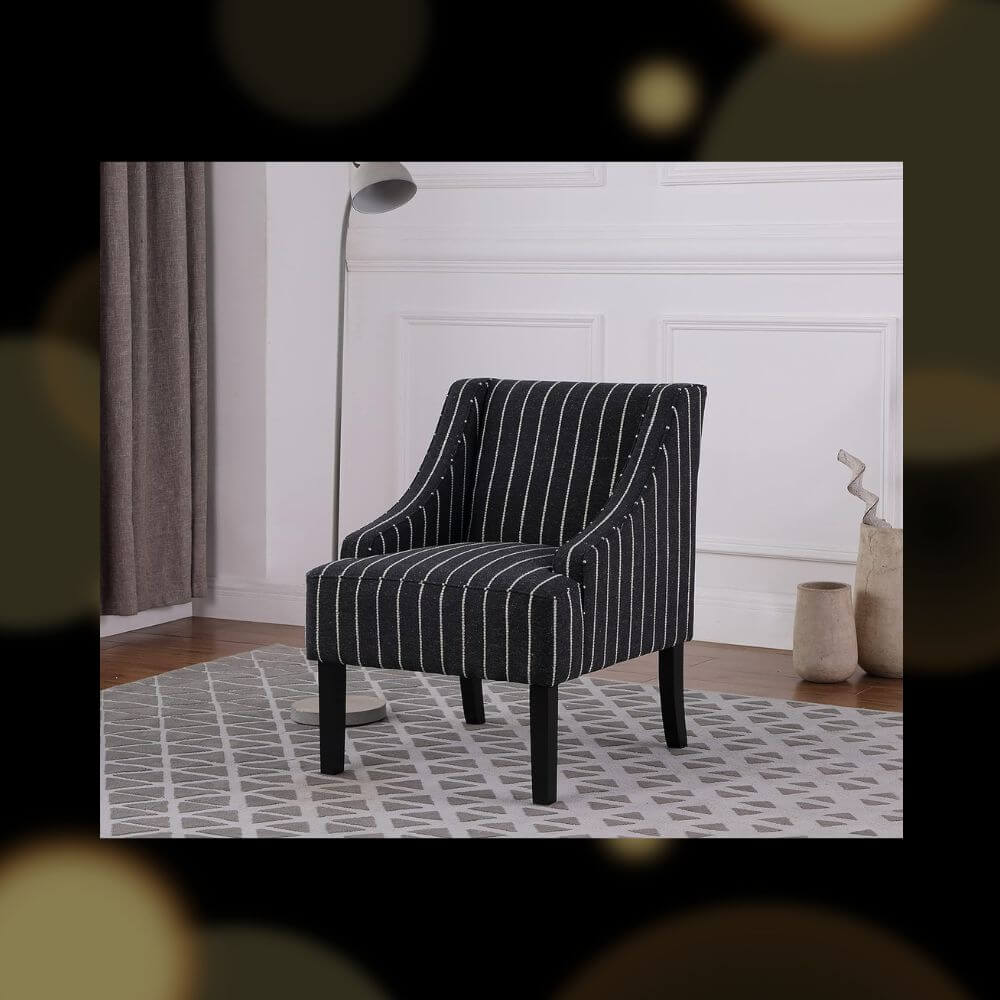 The HomePop Velvet Swoop Arm Accent Chair is a must-have addition to any modern living space. With its black velvet fabric and white boucle stripe, this chair exudes style and sophistication. This piece provides the perfect balance of comfort and durability with its medium-firm cushion. Supported by sturdy wood legs finished in ebony, this chair is not only stunning but built to last.