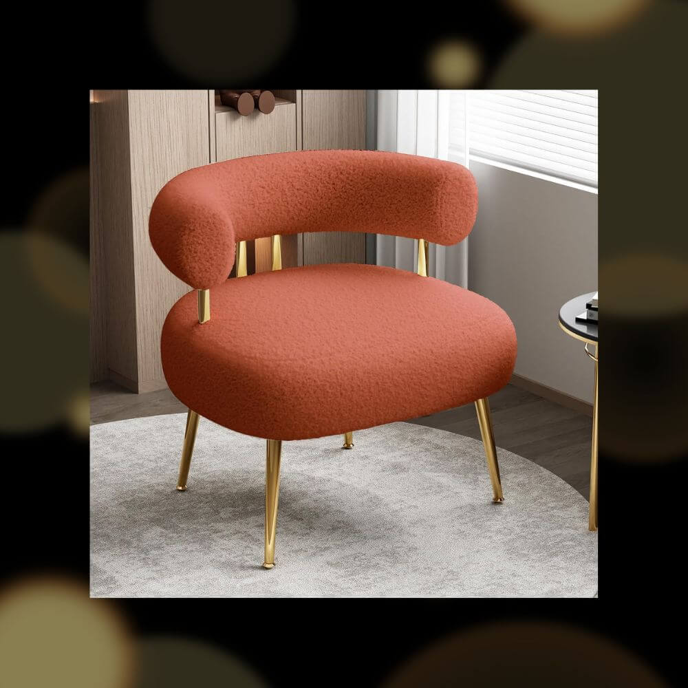 What's more, the chair's rose gold metal legs are not only chic but also heat and corrosion-resistant, with a strong load-bearing capacity that ensures durability. Add a touch of sophistication to any room with the Olela Modern Accent Chair with Arms, one of the finest boucle chairs in the market.