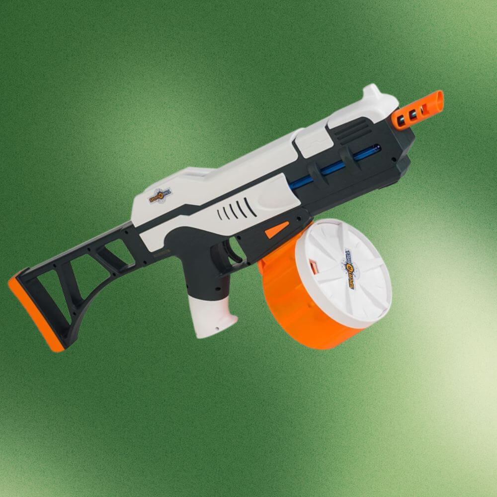 What sets this water blaster apart is its 1,200 water gel ball drum magazine capacity. Load up your mag once and you’re ready to go - no reloading needed! The water gel balls hydrate in just 4 hours and fragment on impact, making them non-toxic and non-staining with easy clean-up. With the power of a 7.4V rechargeable battery, you can get up to 5,000 shots per charge!