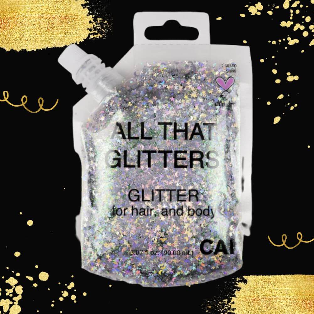 CAI BEAUTY NYC Silver Glitter is perfect for anyone looking to add some extra sparkle and shine to their look. This chunky glitter is designed to stick to your hair and skin all day long, so you can dazzle at any event or have some harmless fun with your friends.