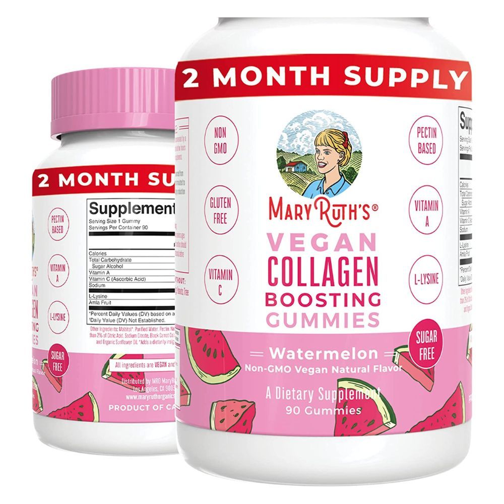 MaryRuth Organics gummies are a delicious watermelon flavored, vegan way to get your daily dose of collagen-promoting nutrients. The watermelon-flavored gummies are made with pectin, rather than gelatin, and are non-GMO and GMP certified. They contain L-lysine, Amla fruit, Vitamin A and Vitamin C, all of which have been shown to promote collagen production.