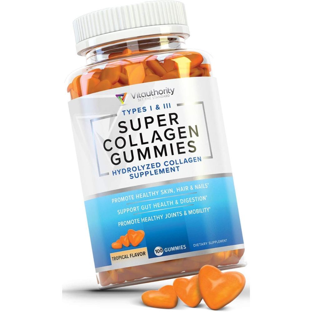 Hydrolyzed collagen is a source of amino acids that helps keep the skin looking plump and elastic. It is also effective in firming up loose skin. Additionally, it works to keep joints healthy by providing support to bones and connective tissues. Vitauthority Super Collagen Protein Gummies are an easy and tasty way to incorporate collagen into your diet.