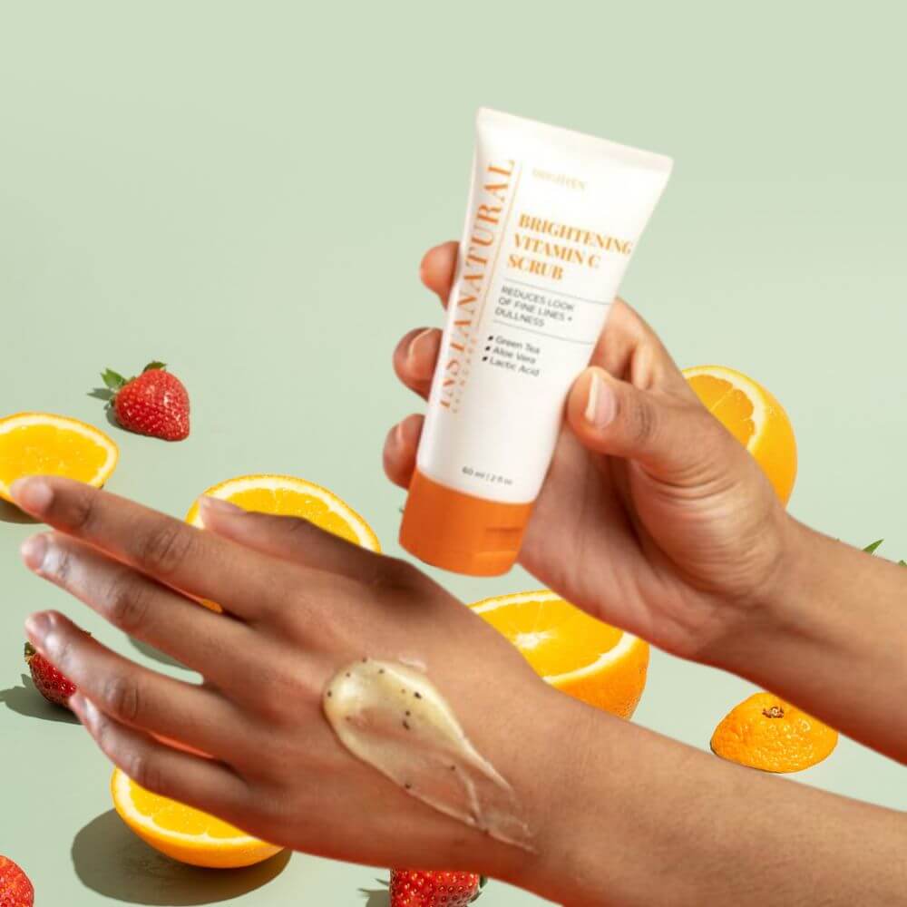 A Vitamin C scrub is an exfoliating product that contains Vitamin C as its main ingredient. It helps to remove dead skin cells, unclog pores, and reveal brighter and healthier-looking skin.