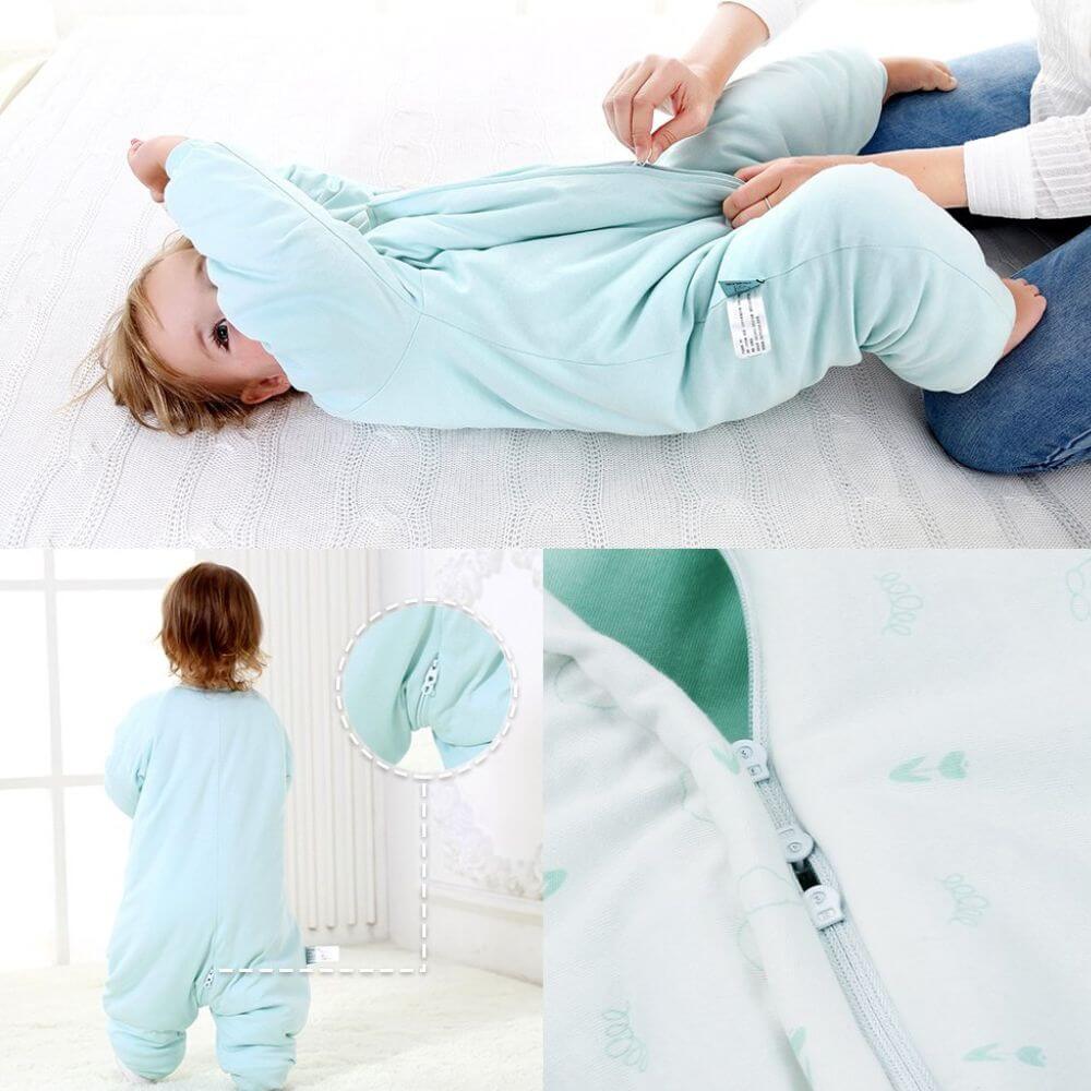The lightweight and breathable natural cotton fabric lets your baby enjoy optimal temperature control during use, while the reversible neckline provides all types of sleepers (back/side/tummy) with a comfortable fit. And diaper changes become less of a hassle with its easy two-way zipper system!